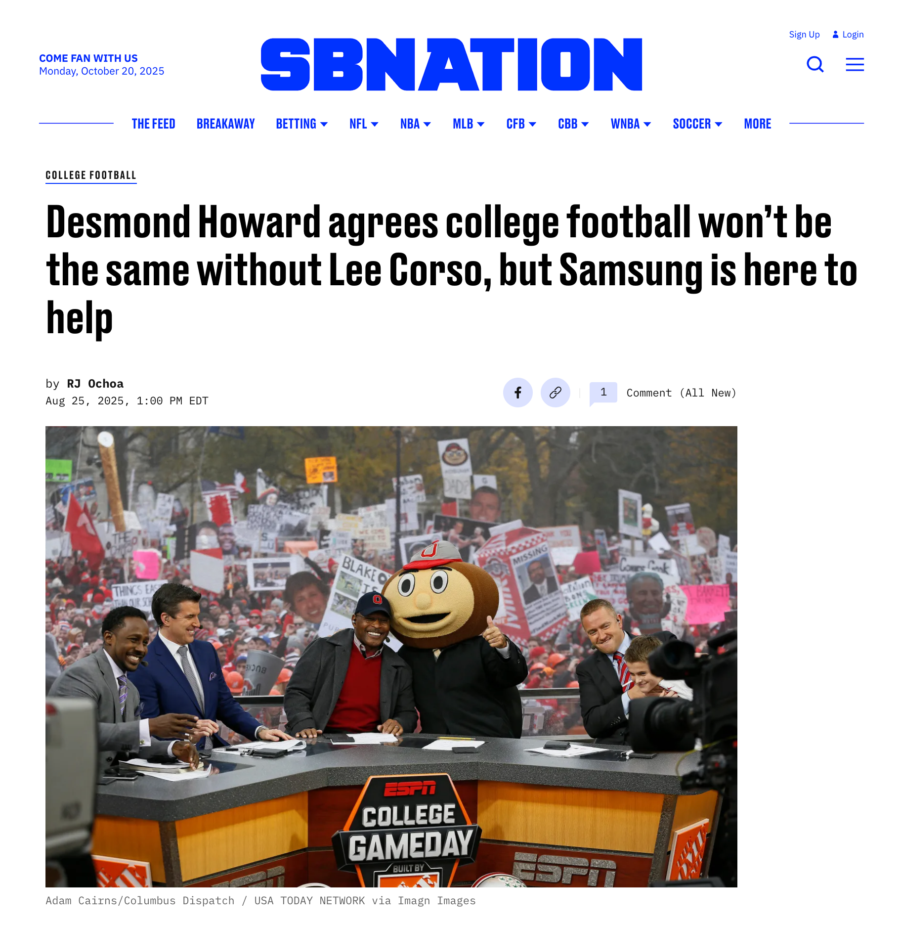 Without an NCAA partnership, Samsung broke into college football by tapping into the cultural moment of Lee Corso’s retirement—positioning its TVs as the only ones powerful enough to keep a legend in the game, even from his couch.